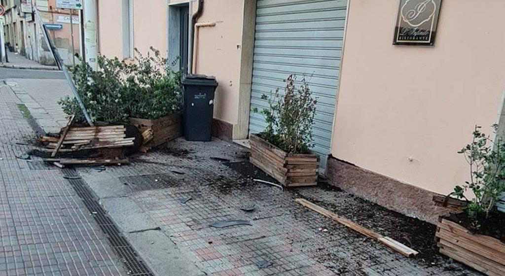 Potrebbe esserci un’uscita di strada nella rotonda alla base della distruzione questa notte di alcune fioriere davanti al ristorante L’Infinito, in via Santa Gilla a Cagliari.