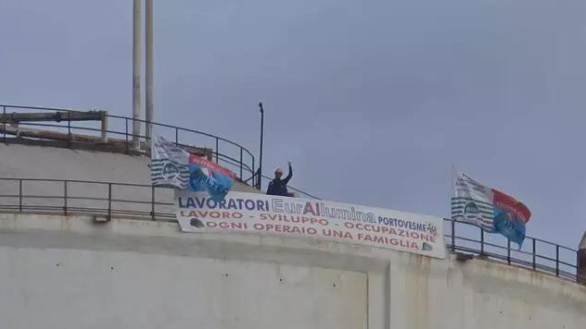 Nonostante la notizia della convocazione del tavolo interministeriale su Eurallumina per il 10 dicembre, prosegue senza sosta l’azione di protesta dei quattro operai che si trovano a 40 metri di altezza sulla sommità di un silo a Portovesme. Attualmente, una tenda installata sulla struttura offre riparo ai lavoratori dalla pioggia battente.