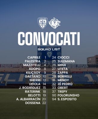 Sul fronte convocazioni, arrivano segnali incoraggianti. Torna a disposizione Dossena dopo la squalifica, mentre Belotti e Borrelli sono stati recuperati e potranno offrire soluzioni in più in attacco. Confermata anche la presenza del giovane Mendy dall’Under 20. Assente Pavoletti, fermo per infortunio.