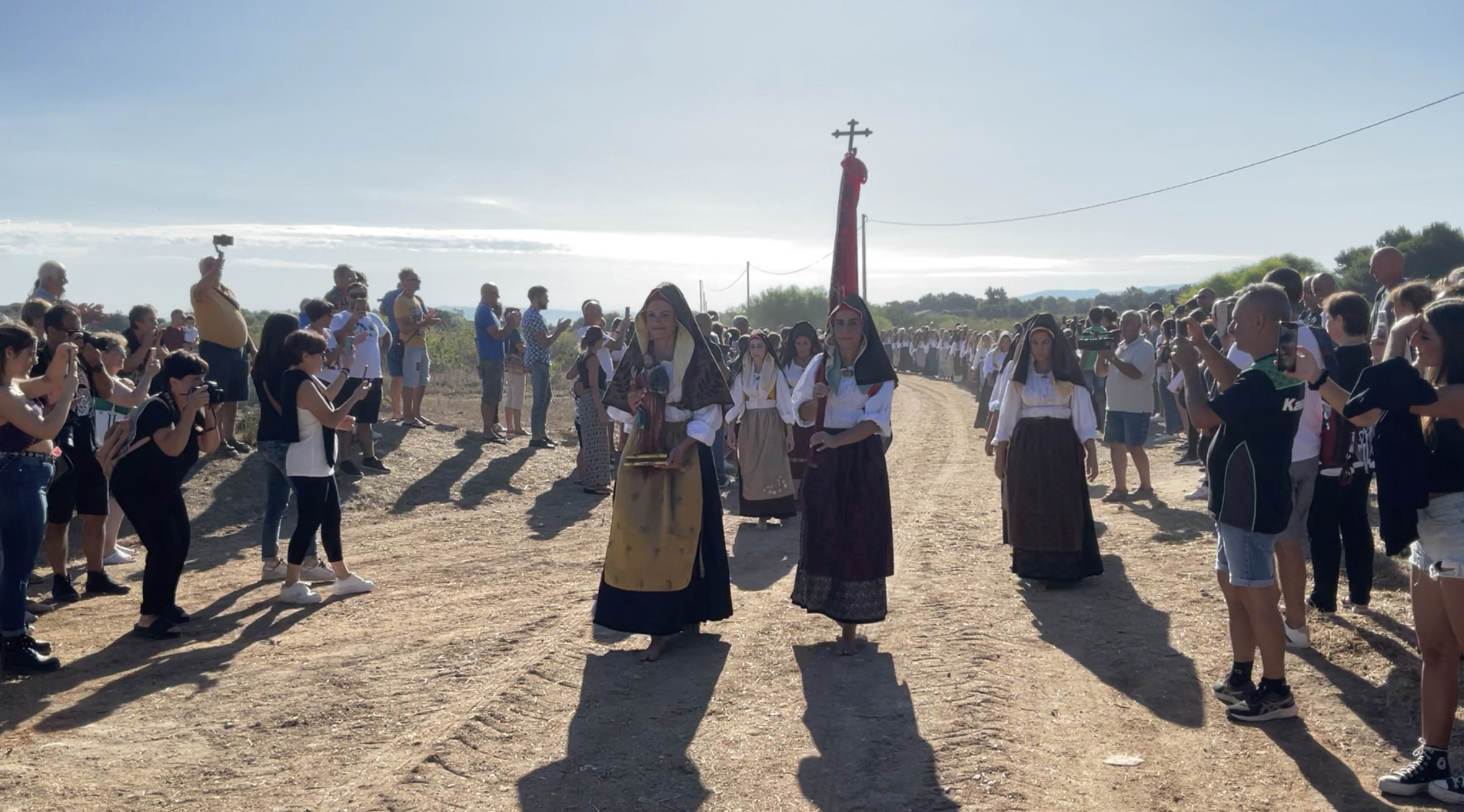 Il passo leggero, ritmato dalla preghiera e dai canti, precede la corsa che il prossimo fine settimana vedrà gli uomini portare in salvo la statua del Salvatore dagli incursori, come vuole la tradizione. La processione dedicata a Santu Srabadoeddu è partita dalla chiesa di santa Maria alle 6:45 in direzione del Santuario di San Salvatore lungo la strada sterrata chiamata Camminu de su Santu.