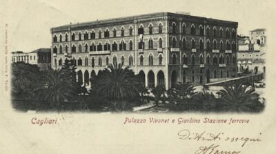 Costruito tra il 1893 e il 1895 su progetto dell’architetto Cesare Picchi, il palazzo fu commissionato dai fratelli Antonio e Filippo Vivanet e rappresenta uno dei più significativi esempi di architettura neogotica in città. La facciata, caratterizzata da portici a sesto acuto, fu anche la prima applicazione del regolamento edilizio che prevedeva i porticati lungo la via Roma, dando così origine all’assetto architettonico che ancora oggi definisce il fronte mare cagliaritano.